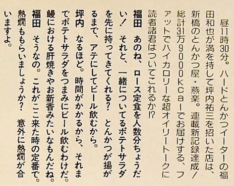 ![]() 福田和也先生が新橋にトンカツを食いに行く。これは読まないわけにいかない!